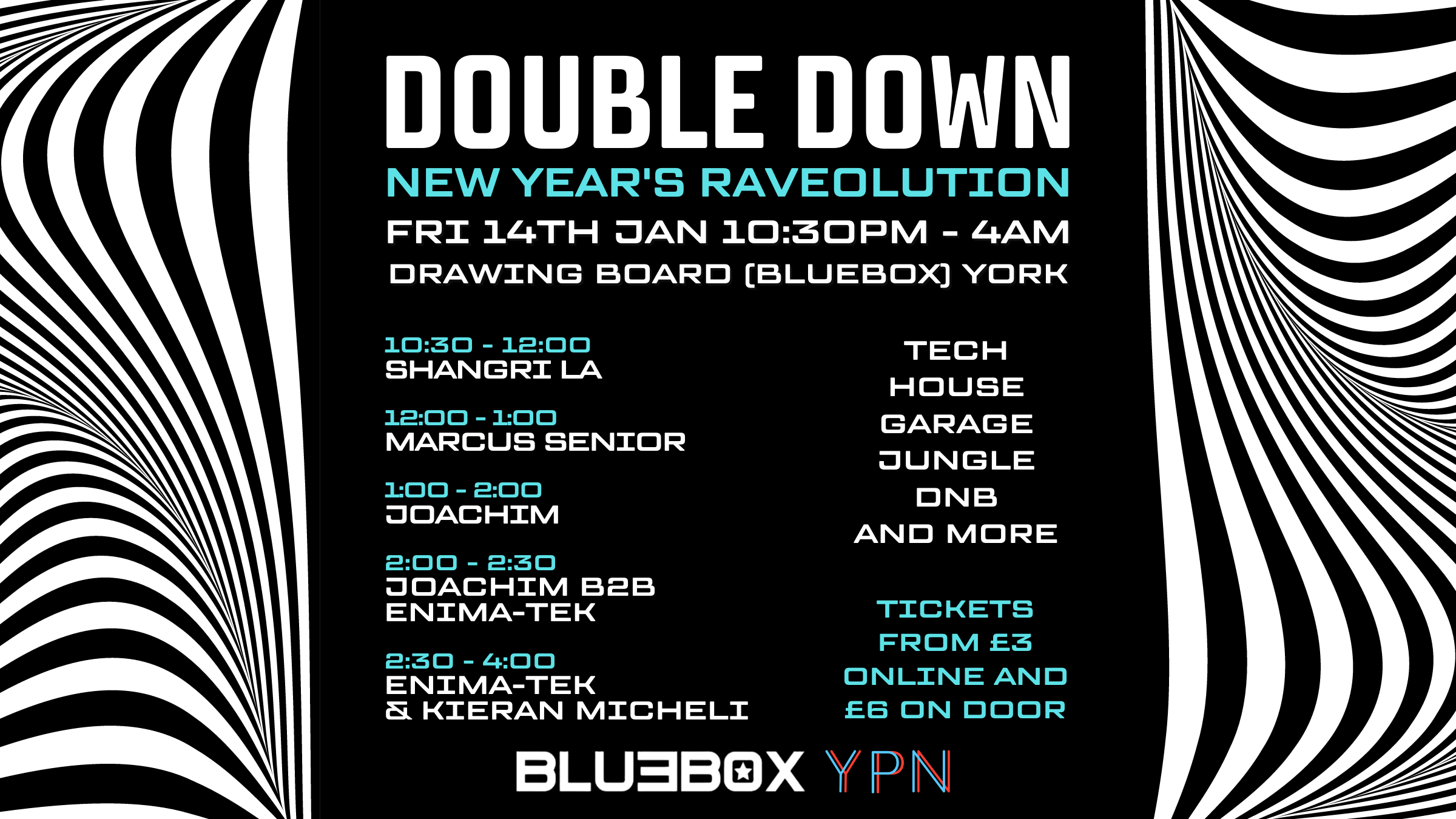 Double Down New Year S Raveolution Fri 14th January At Bluebox At The Drawing Board Bluebox York On 14th Jan 2022 Fatsoma
